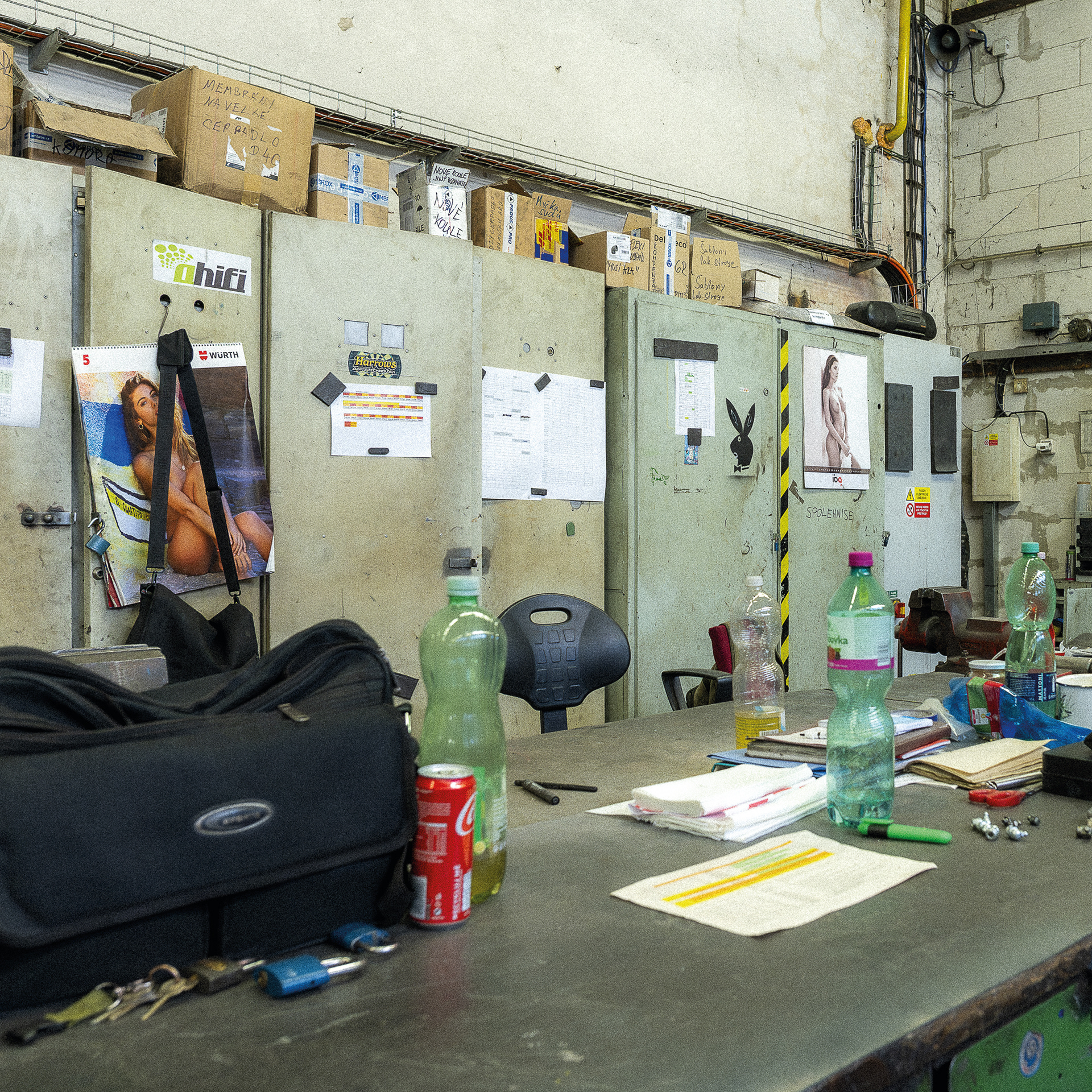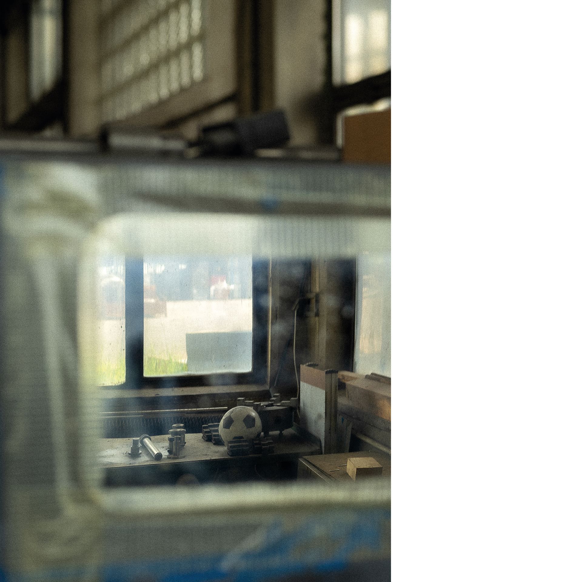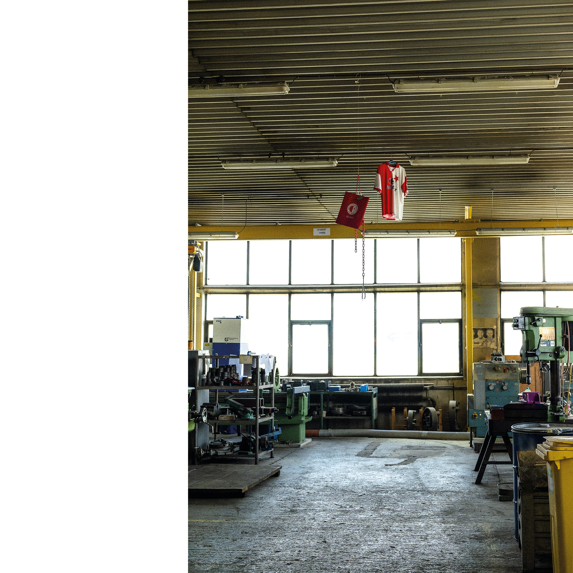 Fotografie mě znovu dostala za zavřené dveře. Doufala jsem v dokument, nakonec vznikl portrét. Za vinu to dávám žluté vestě, která zařídila, aby se mi vyhnul náklaďák, ještěrka i člověk. Ale nakonec jsem ho přeci jen zachytila – ve fotbalovém míči odloženém na pongu s nářadím, v malůvkách na šatních skříňkách a v obědovém meníčku vyvěšeném mezi nahatými plakáty, v indexech jeho přítomnosti.