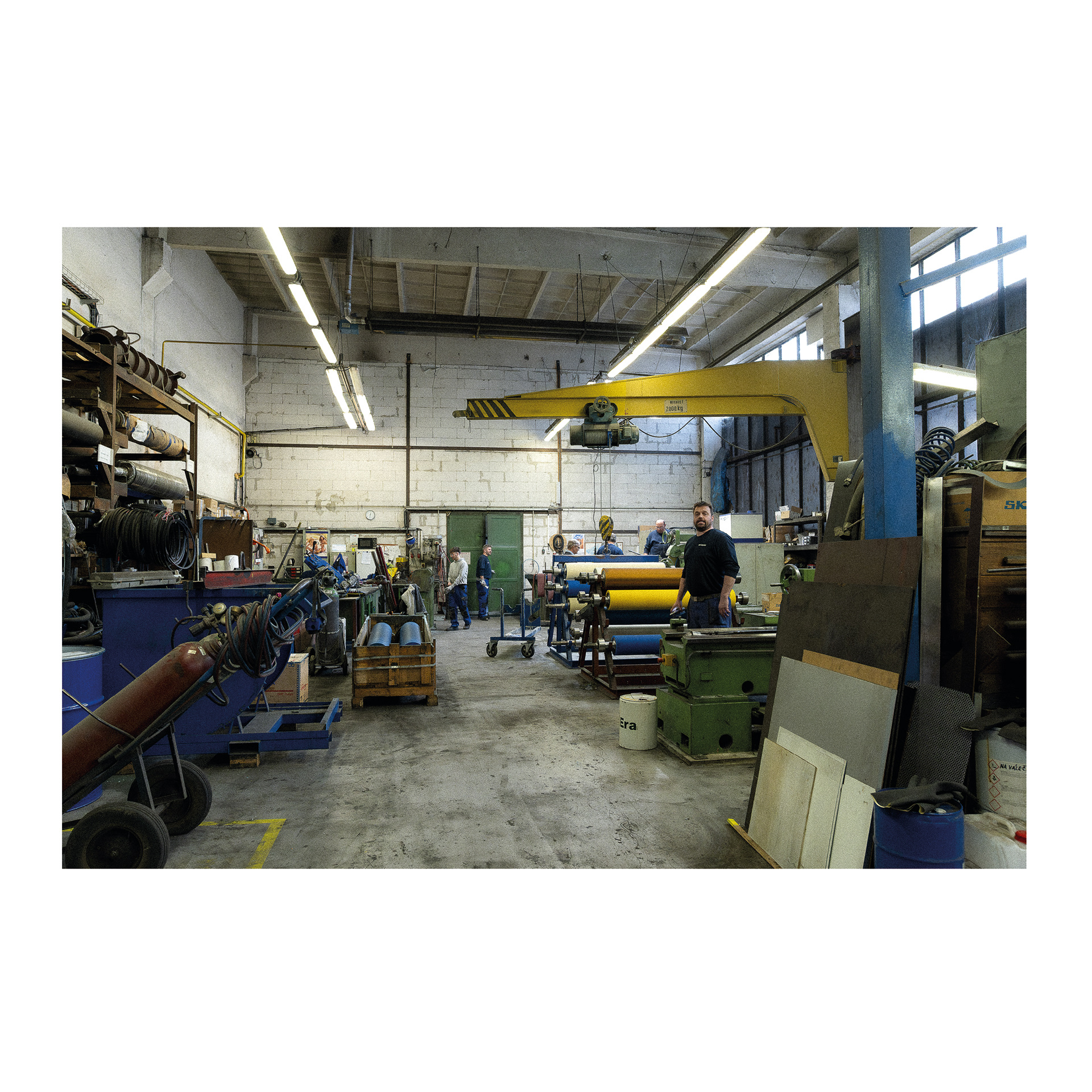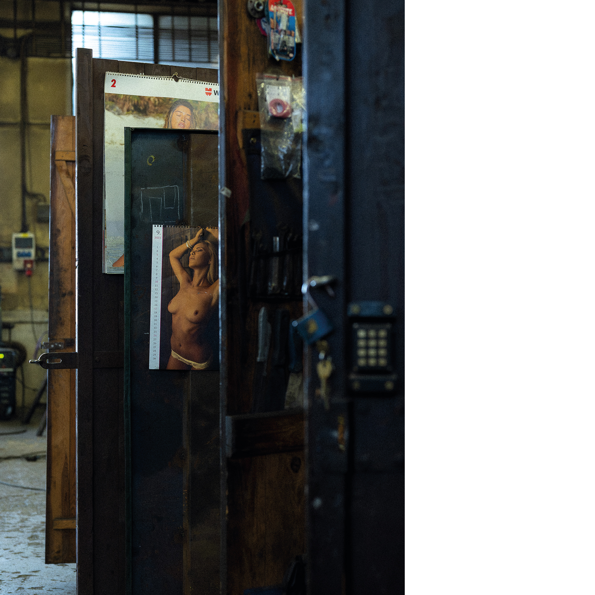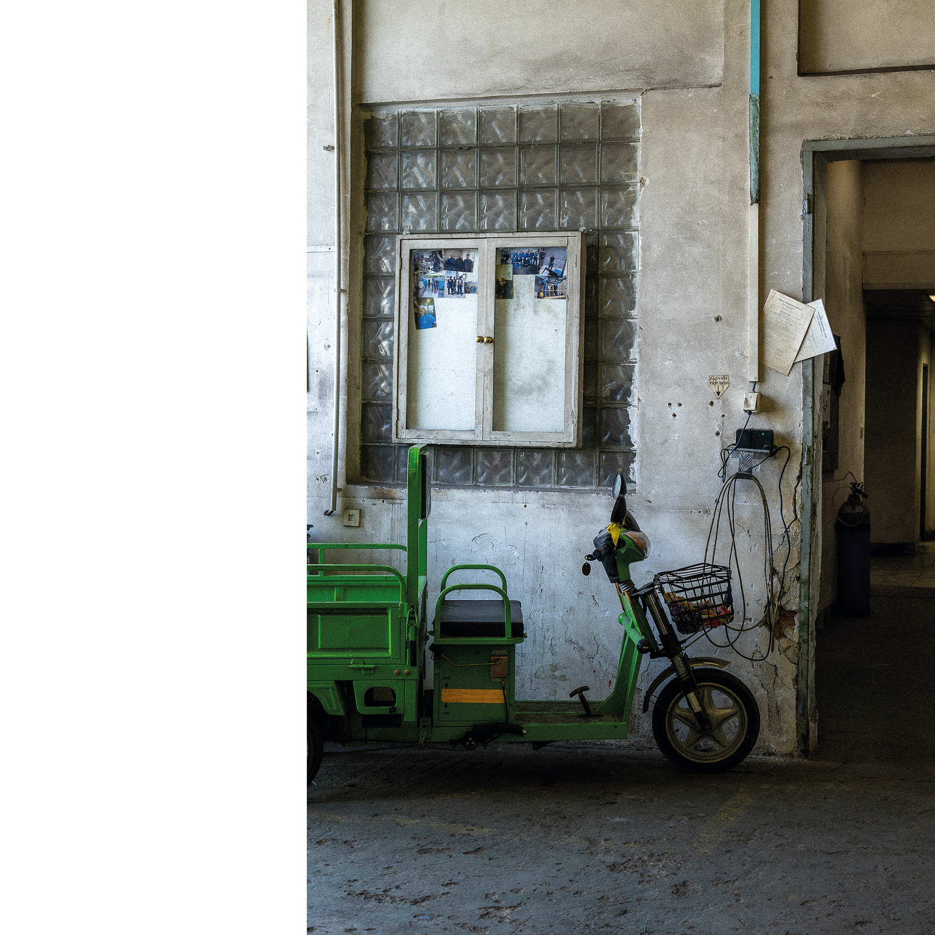 Fotografie mě znovu dostala za zavřené dveře. Doufala jsem v dokument, nakonec vznikl portrét. Za vinu to dávám žluté vestě, která zařídila, aby se mi vyhnul náklaďák, ještěrka i člověk. Ale nakonec jsem ho přeci jen zachytila – ve fotbalovém míči odloženém na pongu s nářadím, v malůvkách na šatních skříňkách a v obědovém meníčku vyvěšeném mezi nahatými plakáty, v indexech jeho přítomnosti.